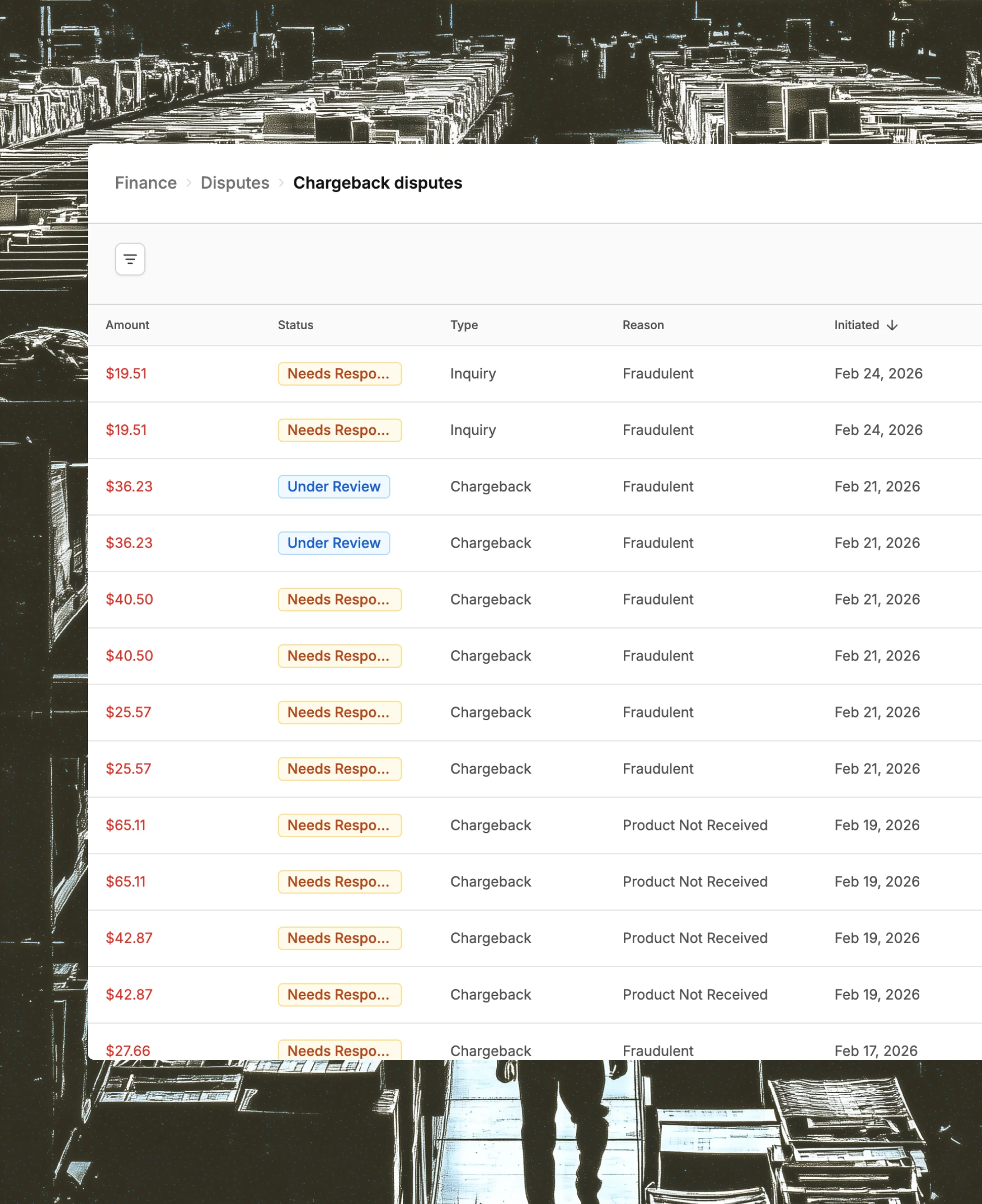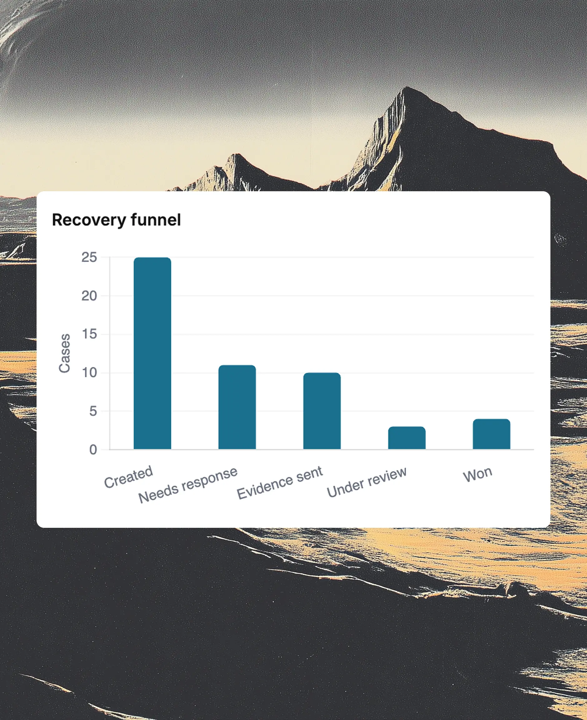 Track win rates, dispute volume, and recovered revenue over time. Understand which types of chargebacks you're winning and where you're leaving money on the table.